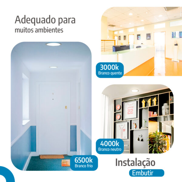 Branco Neutro (4000K) – perfeito para escritórios, consultórios, corredores e áreas comuns, pois equilibra conforto e clareza.