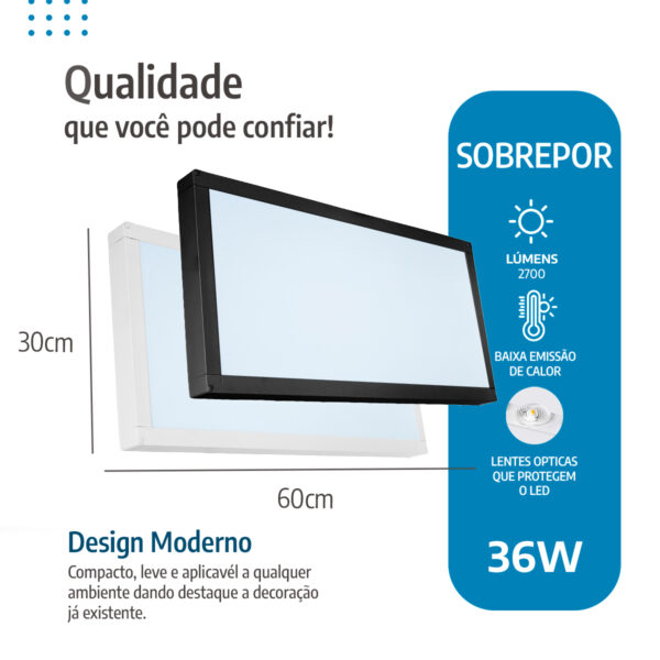 O painel led 30×60 embutir entrega luz potente com apenas 36 W, mantendo estética refinada e instalação prática. Além disso, ele valoriza ambientes internos com iluminação uniforme e economia de energia.